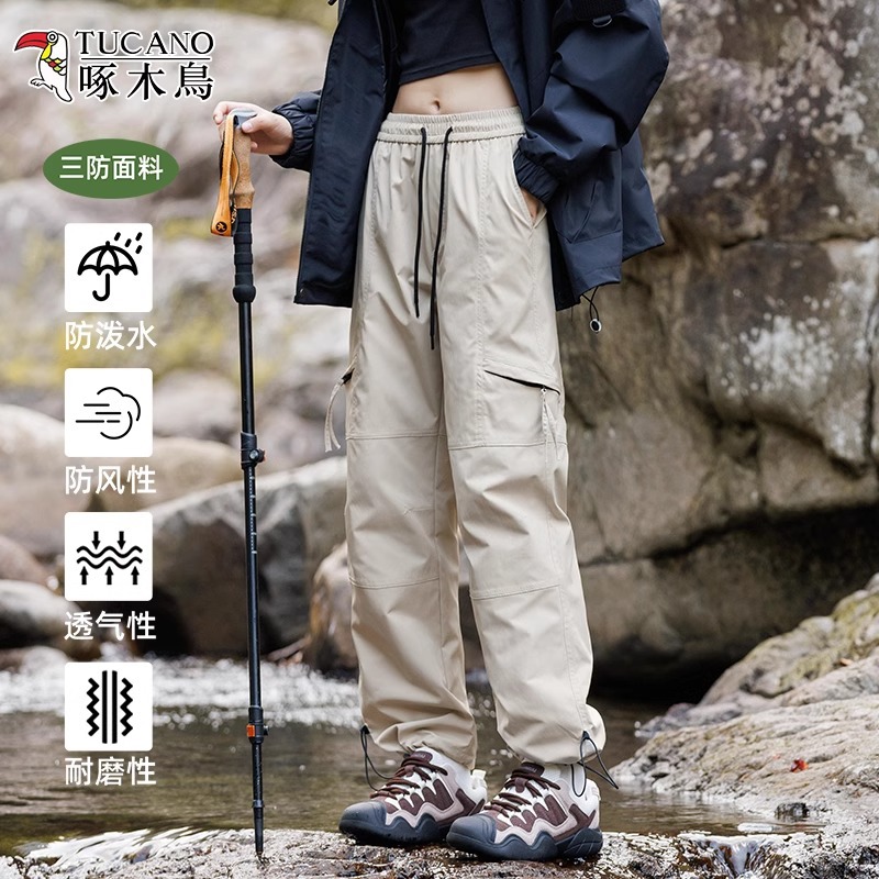 キツツキの屋外突撃ズボンの女性春秋2025の新型の徒歩のズボンの防水のレジャーの広い足の登山のズボンの男