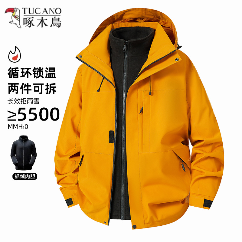 キツツキ突撃コート男性春秋2025新型防風服三合一アウトドア冬工装男性ジャケット