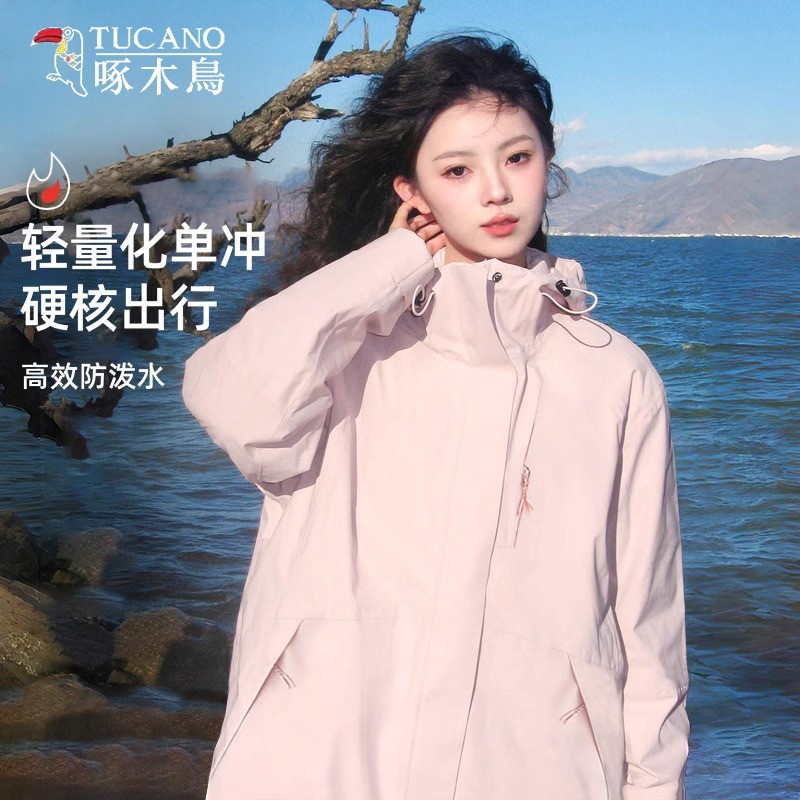キツツキの青い突撃服の女性2025新型春秋三合一防風防水超きれいコート登山服