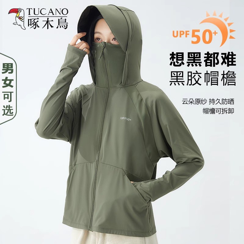 キツツキの原糸の大きなつばは日焼け止め服を取り外します。