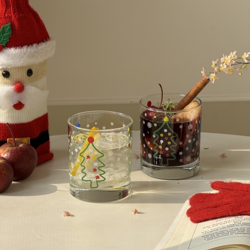 クリスマスグラス3つのクリスマスツリー家庭用ガラスコップジュースカップ耐熱コーヒーカップクリエイティブプレゼント