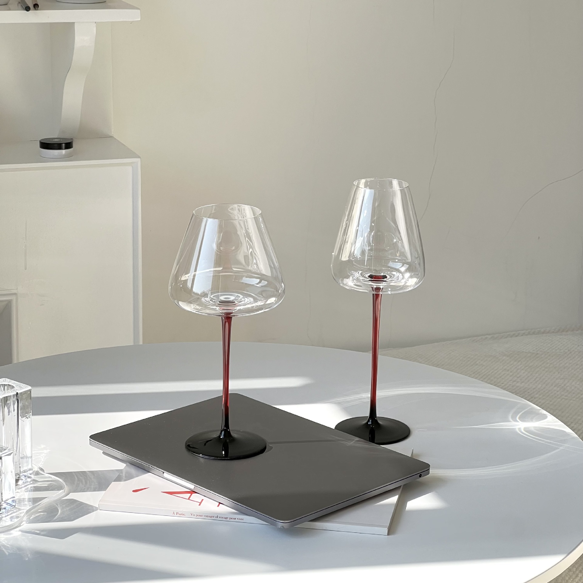 クリエイティブクリスタル大腹高足カップフランス超薄黒カップレバー手作り品グラスロマンチックワイングラス
