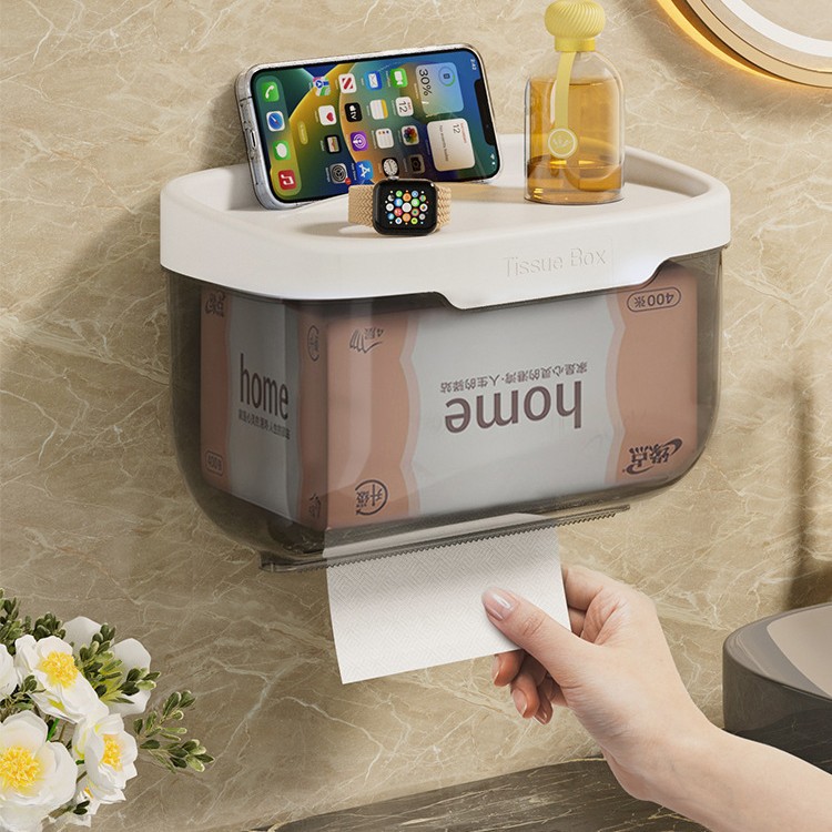 バスルームティッシュボックス壁掛けパンチフリーペーパーボックス防水トイレットペーパーティッシュホルダーバスルームアクセサリー