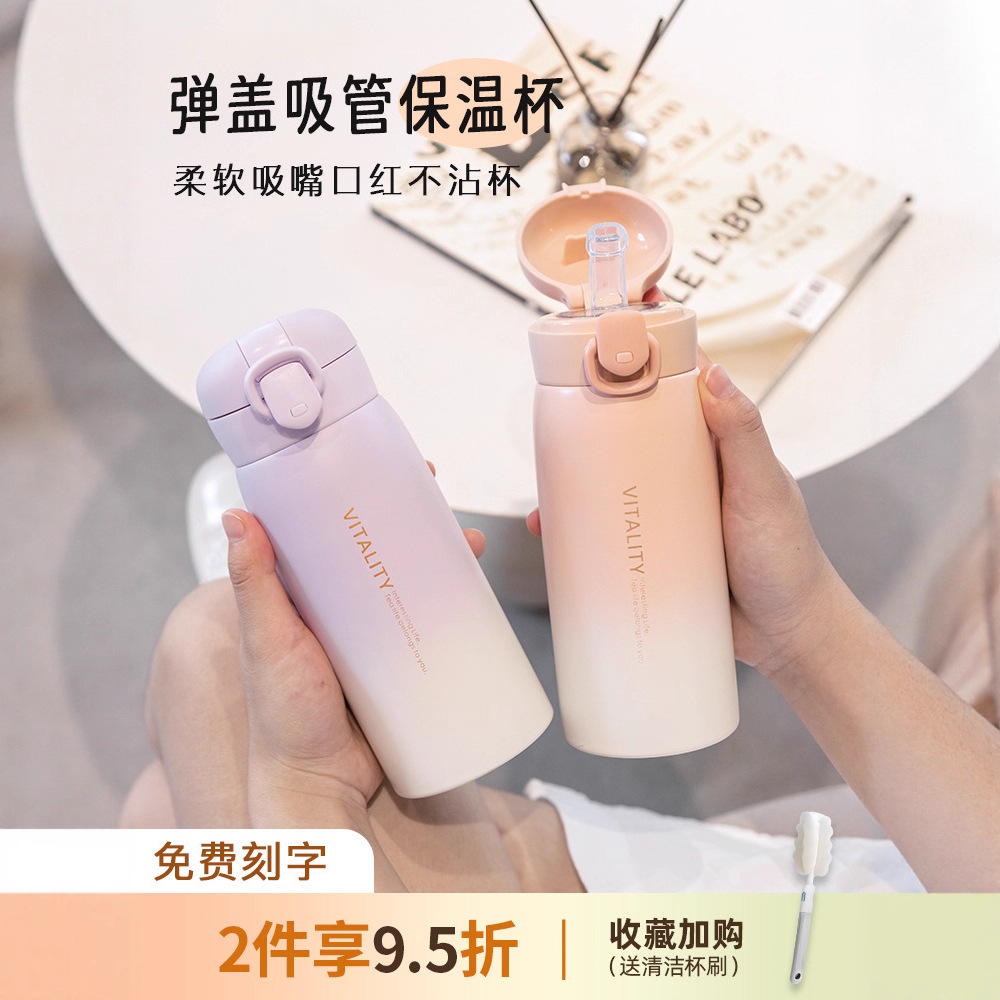 見た目の良い女性、学校に行く子供、学生向けのストロー付きのかわいい断熱ウォーターカップ 2024 Shi Hua