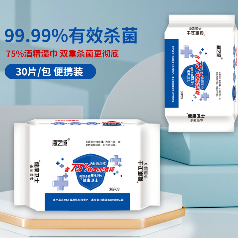 卸売75%医療用アルコール消毒ウェットティッシュ30枚入り携帯用使い捨てアルコールウェットティッシュ洗い不要除菌