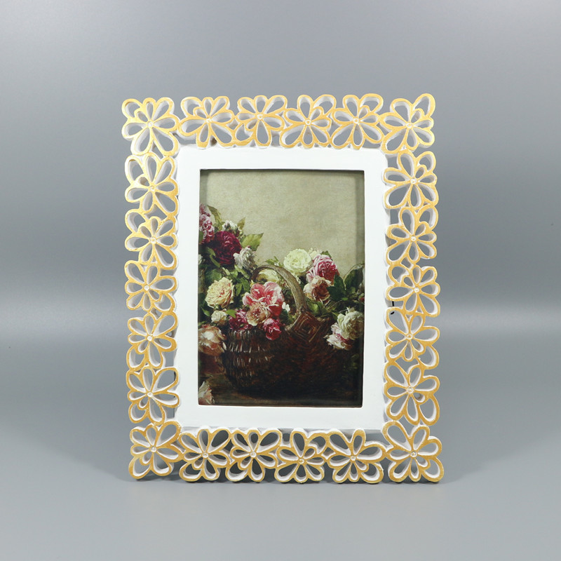 新しい白描画ゴールデンフラワーボーダーフォトフレームリビングルームベッドルームデスクトップ装飾品装飾背景壁組み合わせ額縁工場