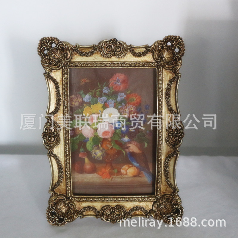 アメリカン樹脂フォトフレーム寝室の装飾額縁装飾品彫刻ゴールデンフォトフレームヨーロッパのレトロなレリーフテーブル