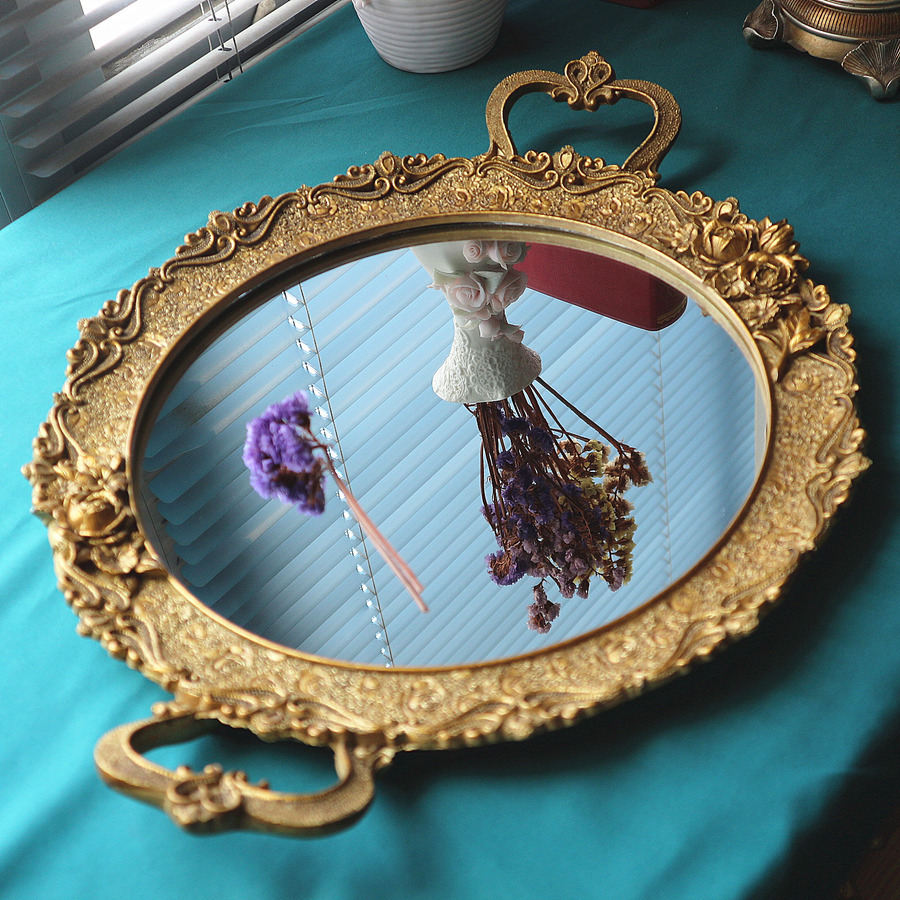 レトロなレリーフのバラの花の樹脂の鏡面のデザートのトレーのアクセサリーの収納盤の家庭の装飾の工芸の置物