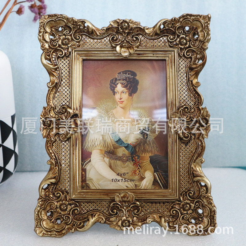 ヨーロッパ風レトロな金樹脂製フォトフレーム装飾背景壁掛け組み合わせ額縁宮殿風古典額縁卓上飾り