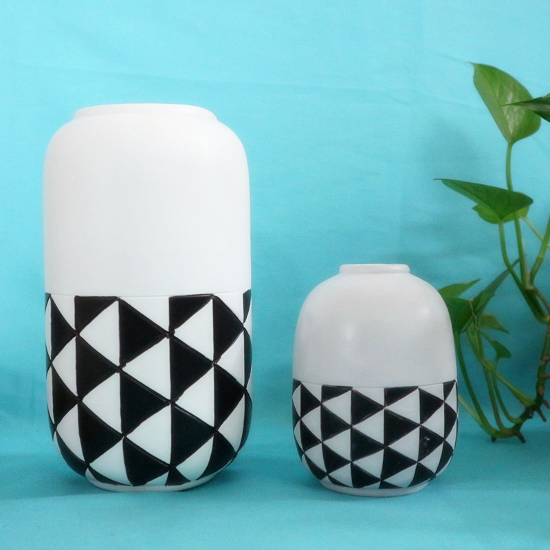 モダンシンプル手描き花瓶白黒格手作り樹脂工芸品ホテル見本室リビング玄関置物