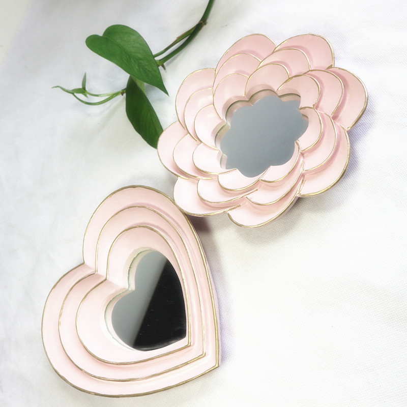 ピンクのハート型の花の化粧鏡の立体的な彫刻の壁掛けの家庭の壁の装飾