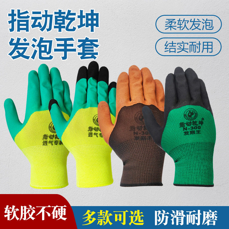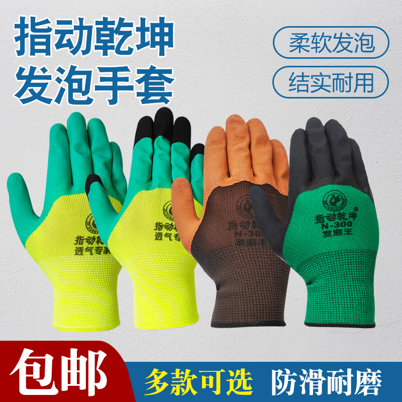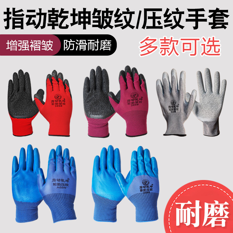 Zhi Dong Qiankun 労働保護手袋 13 針ナイロンしわ耐摩耗性滑り止め浸漬ラテックスエンボス通気性ラバーグローブ