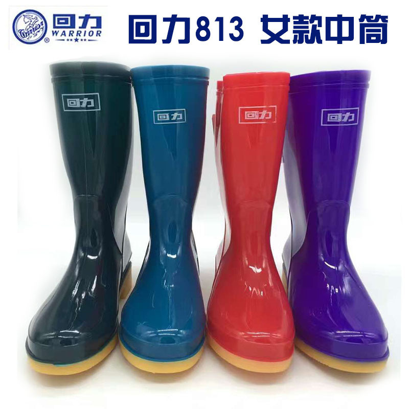 正品回力813中筒雨靴女性防水靴女性牛筋底耐摩耗性滑り止め靴雨靴卸売り