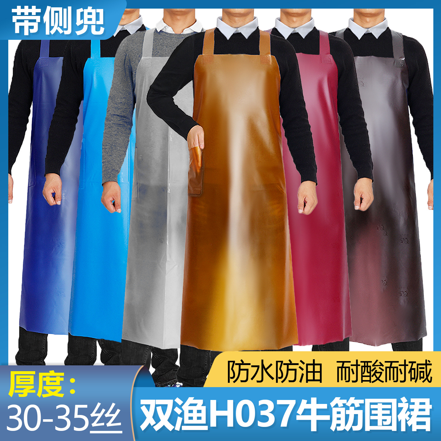 Shuangyu H037 サスペンダーエプロン防水耐油キッチン食堂 PVC 牛腱工業用拡張水産作業エプロン