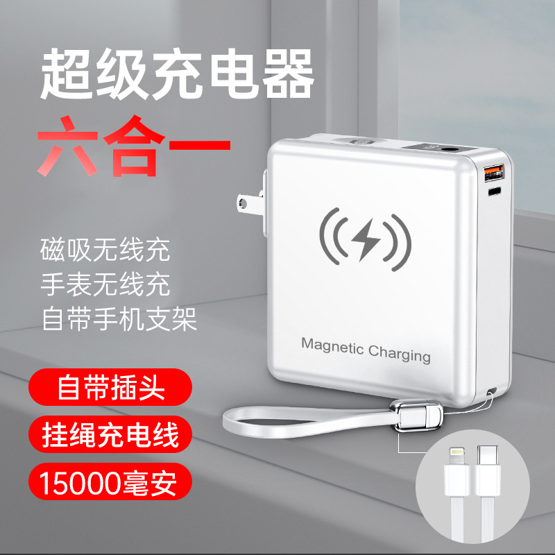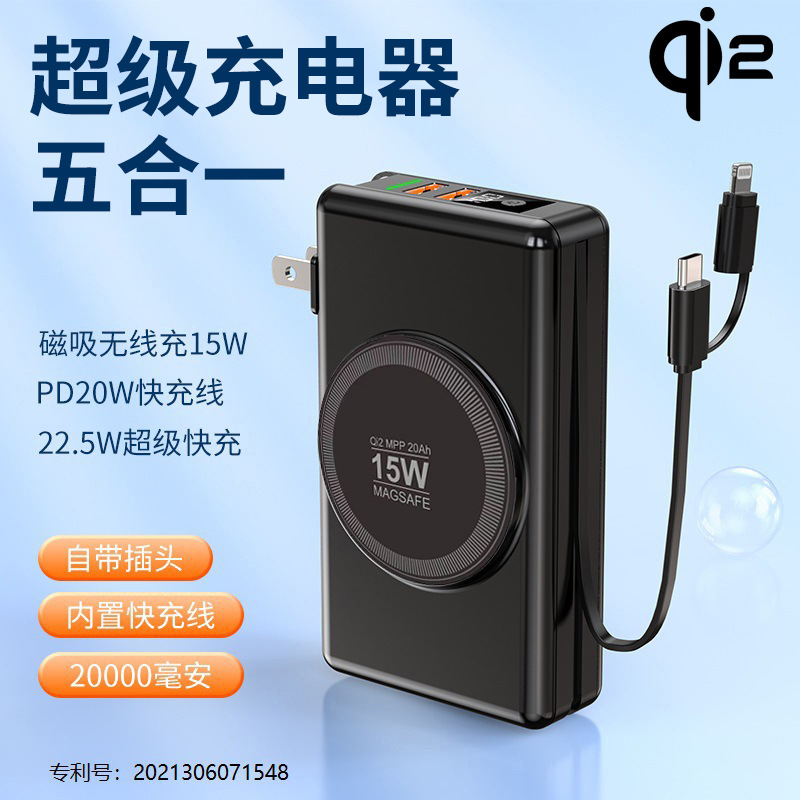 プラグ付きクロスボーダー PD20W 高速充電、有線磁気ワイヤレスパワーバンク 10,000 mAh ファイブインワンモバイル電源