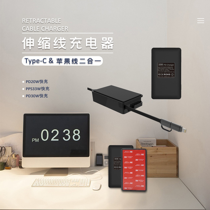 Pd30w急速充電器ce認証適用アップルファーウェイ携帯電話充電器伸縮可能充電ヘッド卸売り