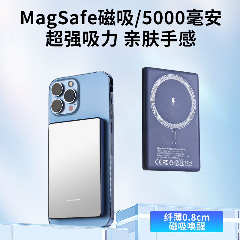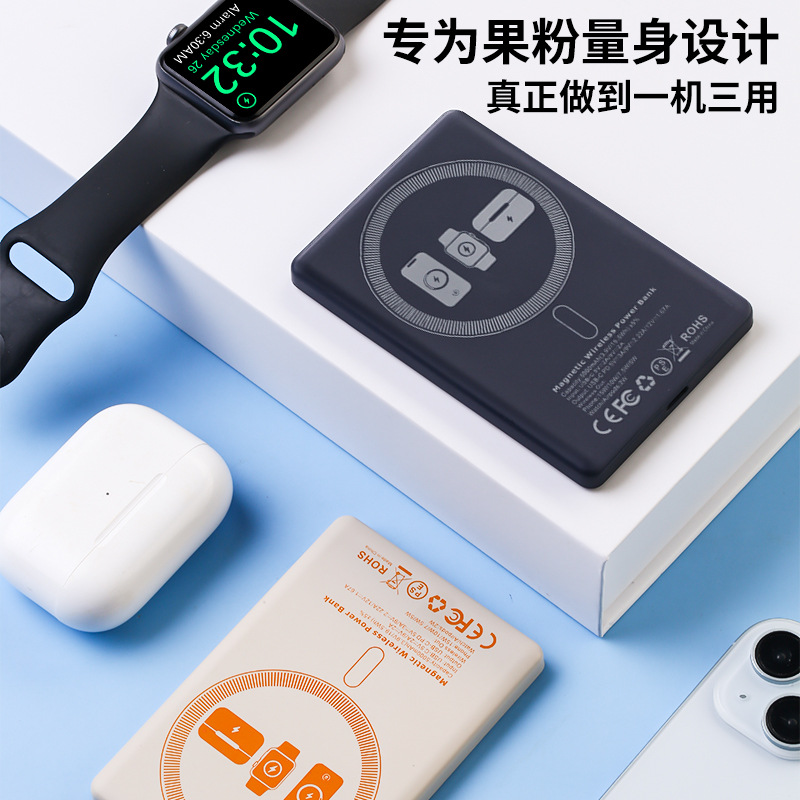 マグセーフ超薄型マグネットワイヤレス充電宝8mmスリーインワン充電式時計イヤホン充電充電式モバイル電源