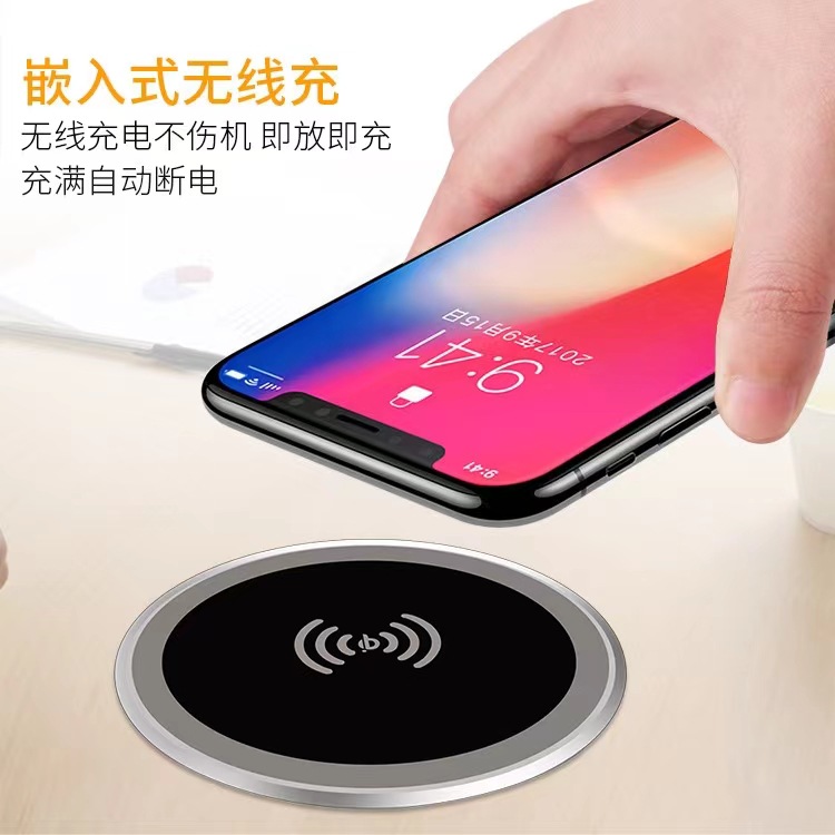 15W急速充電60mm穴内組み込み無線充電家具ホテルベッドサイドキャビネット携帯電話QI無線充電器