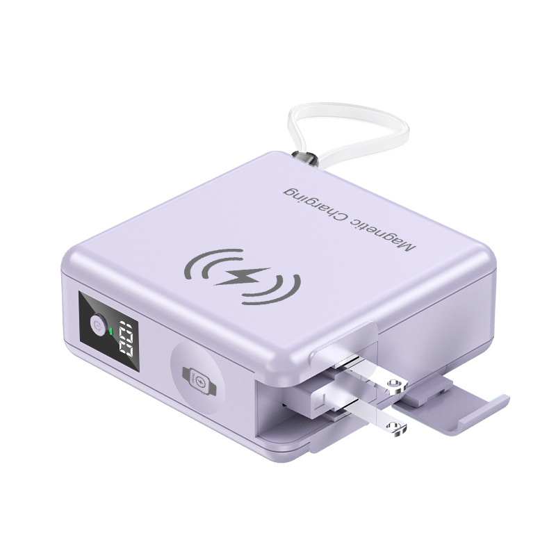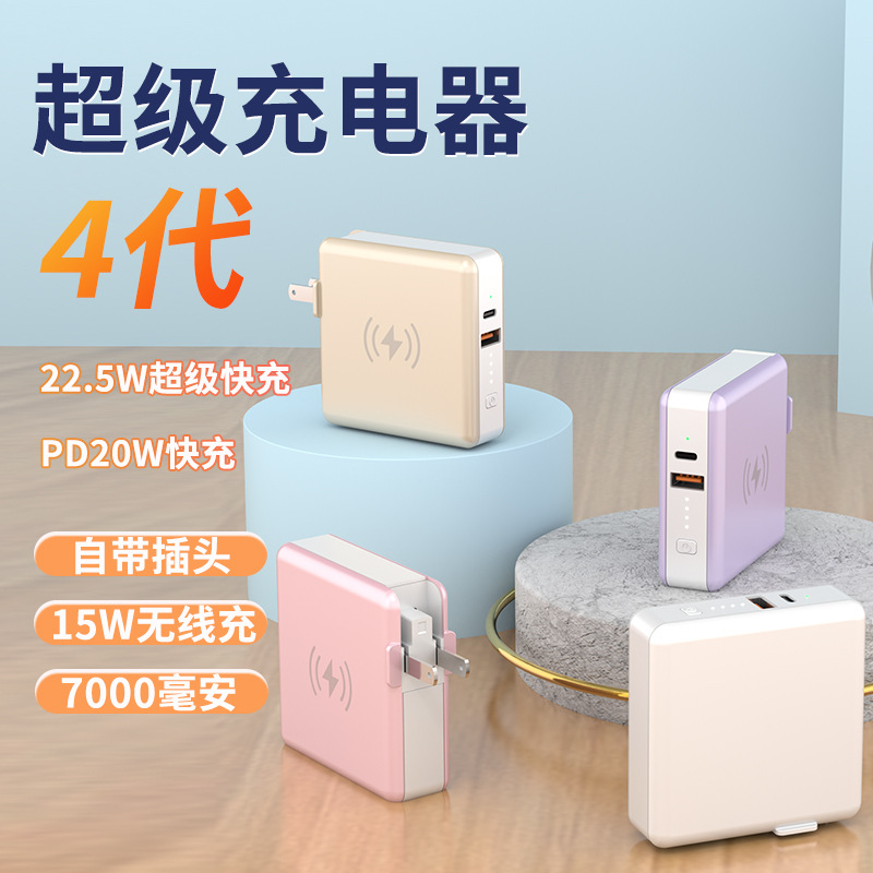 ACプラグ付きワイヤレスパワーバンク、ヨーロッパ標準のスリーインワンポータブル充電器、7000mAh急速充電モバイル電源