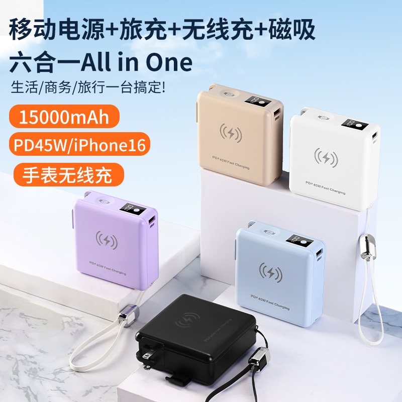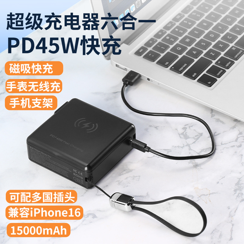 iPhone16対応 Apple 45W急速充電 ポータブル6in1 マグネット式モバイルバッテリー 15000mAh