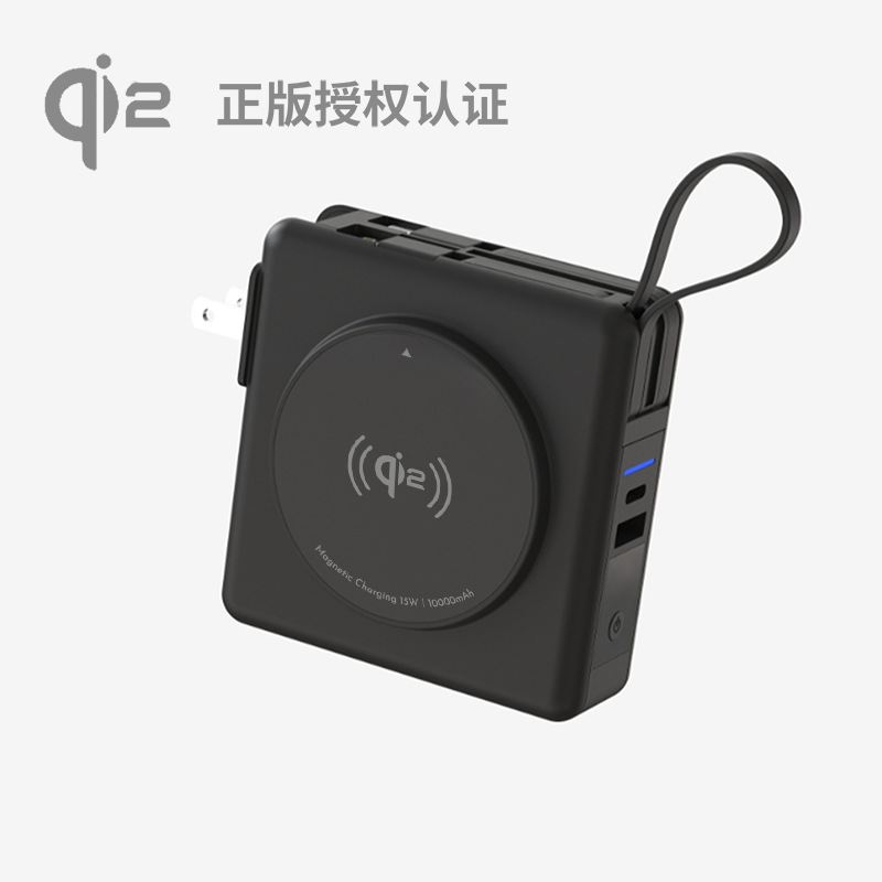 国境を越えたqi2オーストラリア規格SAA認証取得済み、ケーブル内蔵の5in1モバイル急速充電器、10000mAh磁気ワイヤレス充電パック