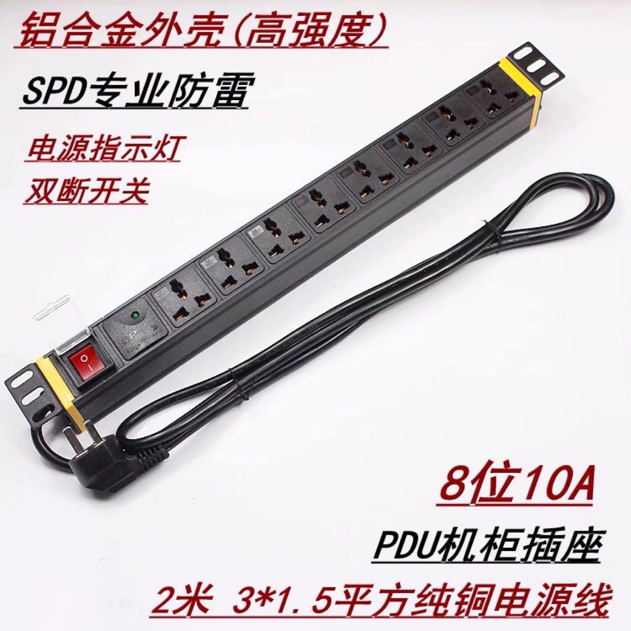 8ビットアルミ合金10A PDUキャビネットは19インチ1Uキャビネットソケット4000W防雷同サージ装置付き