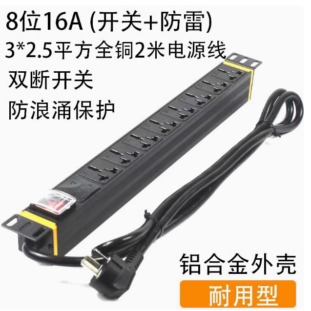 PDUキャビネットソケット8ビット16Aスイッチコンセント電源分配器アンプオーディオラック式アルミニウム合金ハウジング