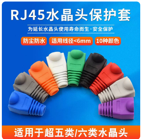 環境保護水晶ヘッドシースケーブル保護カバーrj45ケーブルヘッドカバー8p8c水晶ヘッドゴムカバー1000個