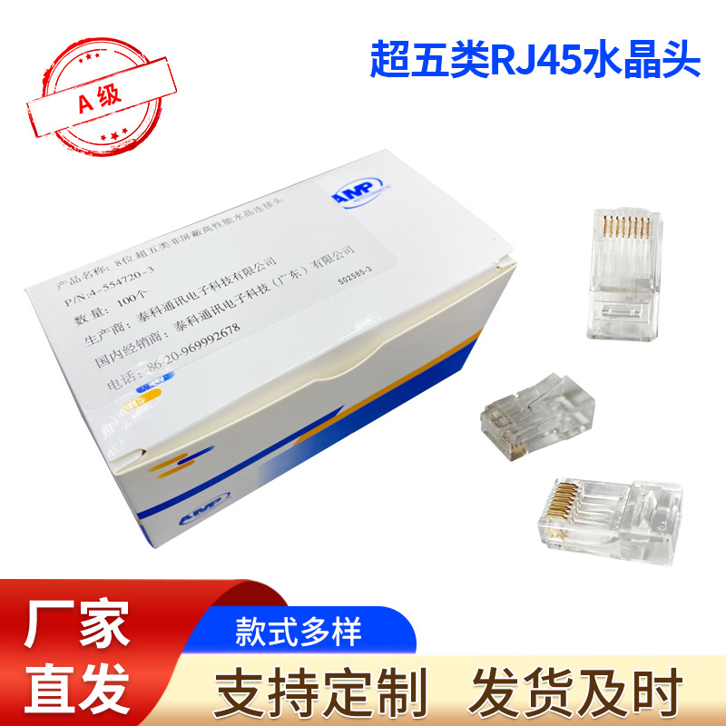 適用amp安普水晶ヘッド超五類8p8cネットワークrj45ネットワークケーブル大三叉純銅チップ水晶ヘッド