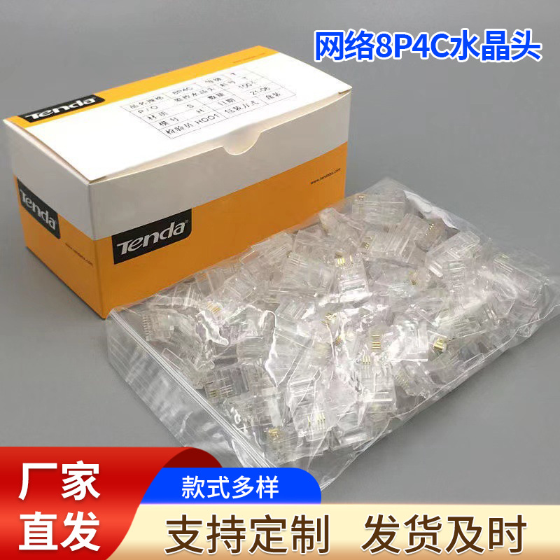 騰達rj45ネットワーク8p4c水晶ヘッド純銅金メッキ三叉コネクタ監視ネットワークコネクタ100個