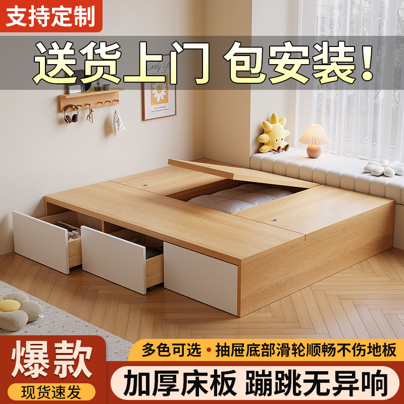 無垢材ベッドモダンな収納シンプルなダブルベッド小さなアパートベッドサイド収納なし畳寮シングルベッド卸売