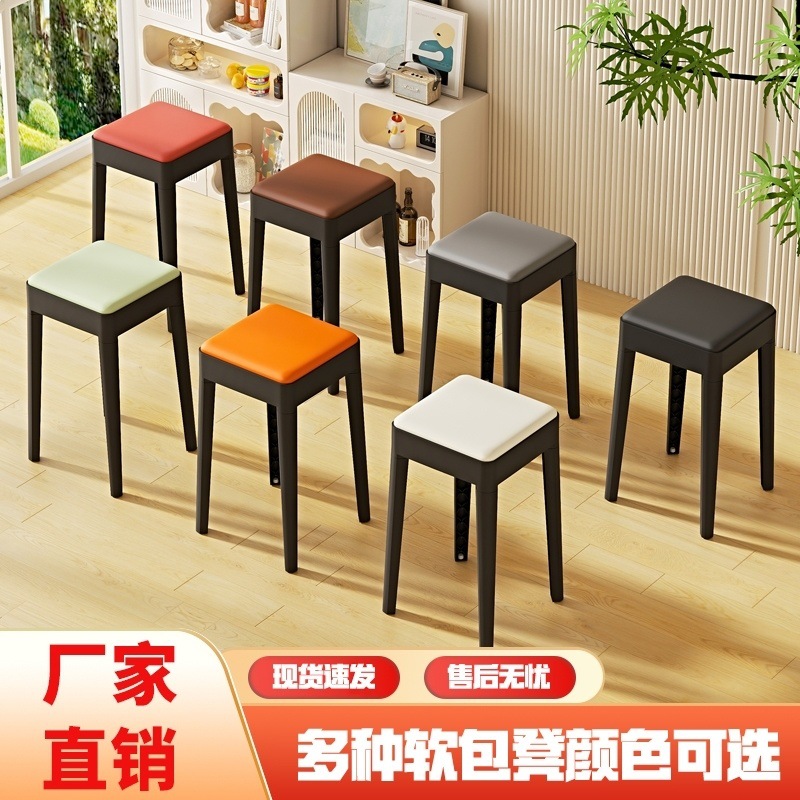 家庭用の柔らかいパッケージのスツール、積み重ね可能、厚みのあるプラスチックの正方形のスツール、背の高いベンチ、丈夫なリビングルームのダイニングテーブル、収納が簡単