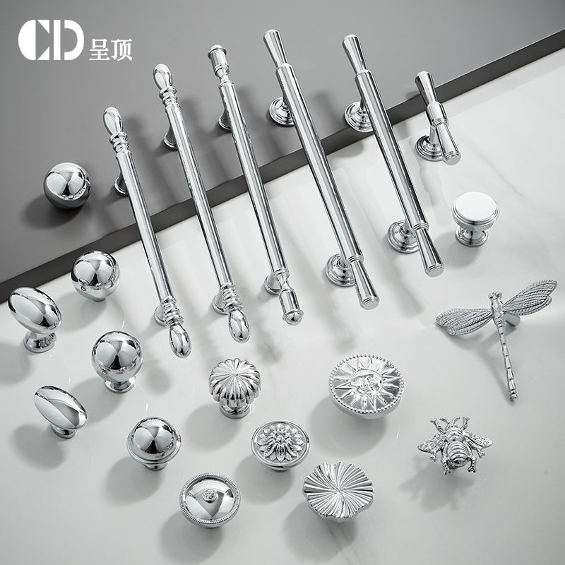 フレンチシルバーハンドル引き出しワードローブドアモダンシンプルキッチンミニマリストスタイルクロムメッキ真鍮外国貿易卸売