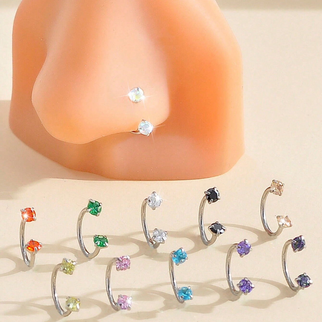 欧米の国境を越えた個性ステンレス馬蹄鼻環人体穿刺U形二頭ジルコン穿刺鼻釘アクセサリー