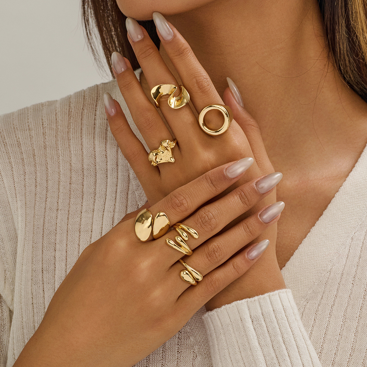 ヨーロッパとアメリカのクロスボーダージュエリー幾何学的なメタルリングセット光沢のあるオープンジョイントリングリング女性のファッションジュエリー新しいスタイル