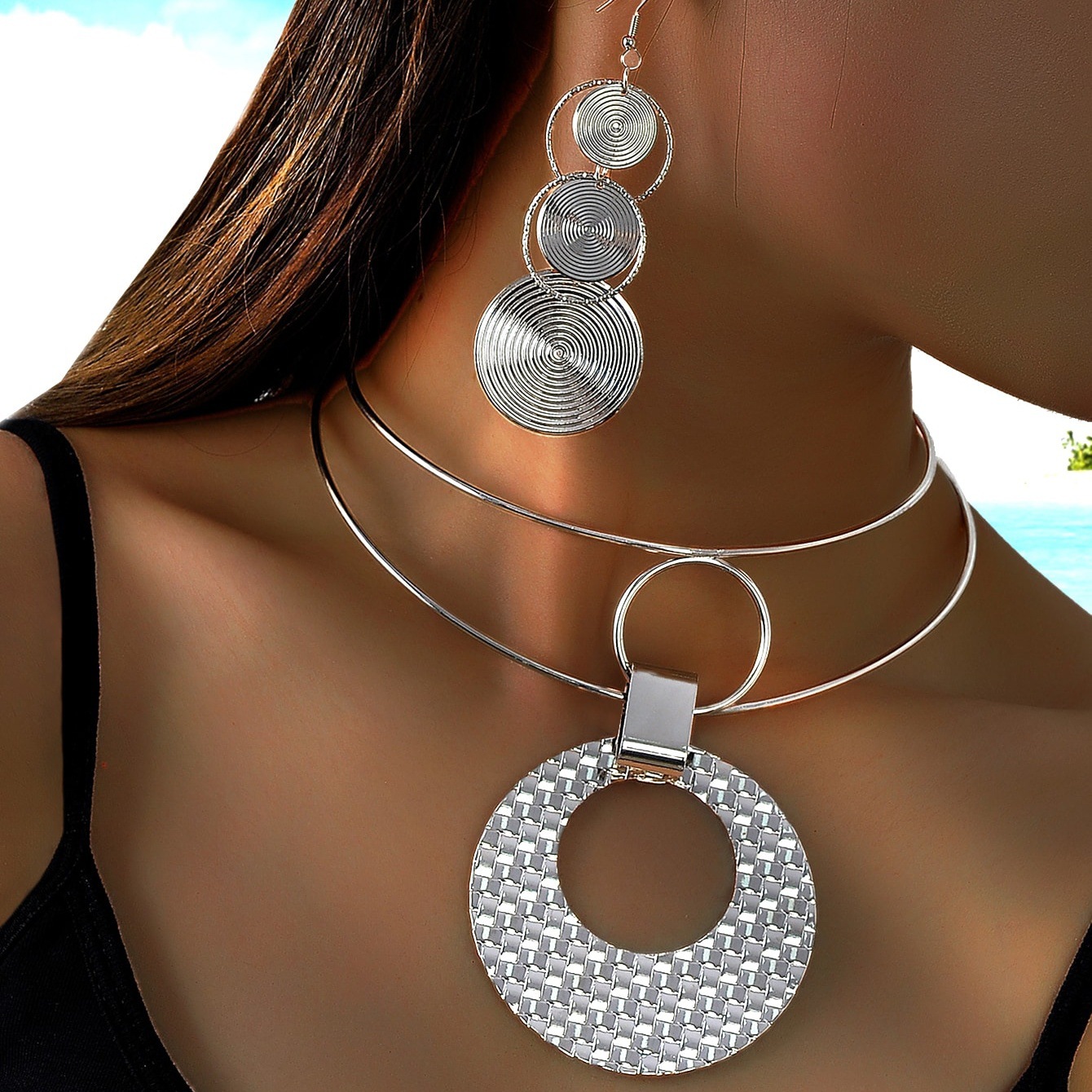 クロスボーダーの人気アクセサリー欧米の軽豪華なネックレスのイヤリングのアクセサリーは簡単で誇張しています。