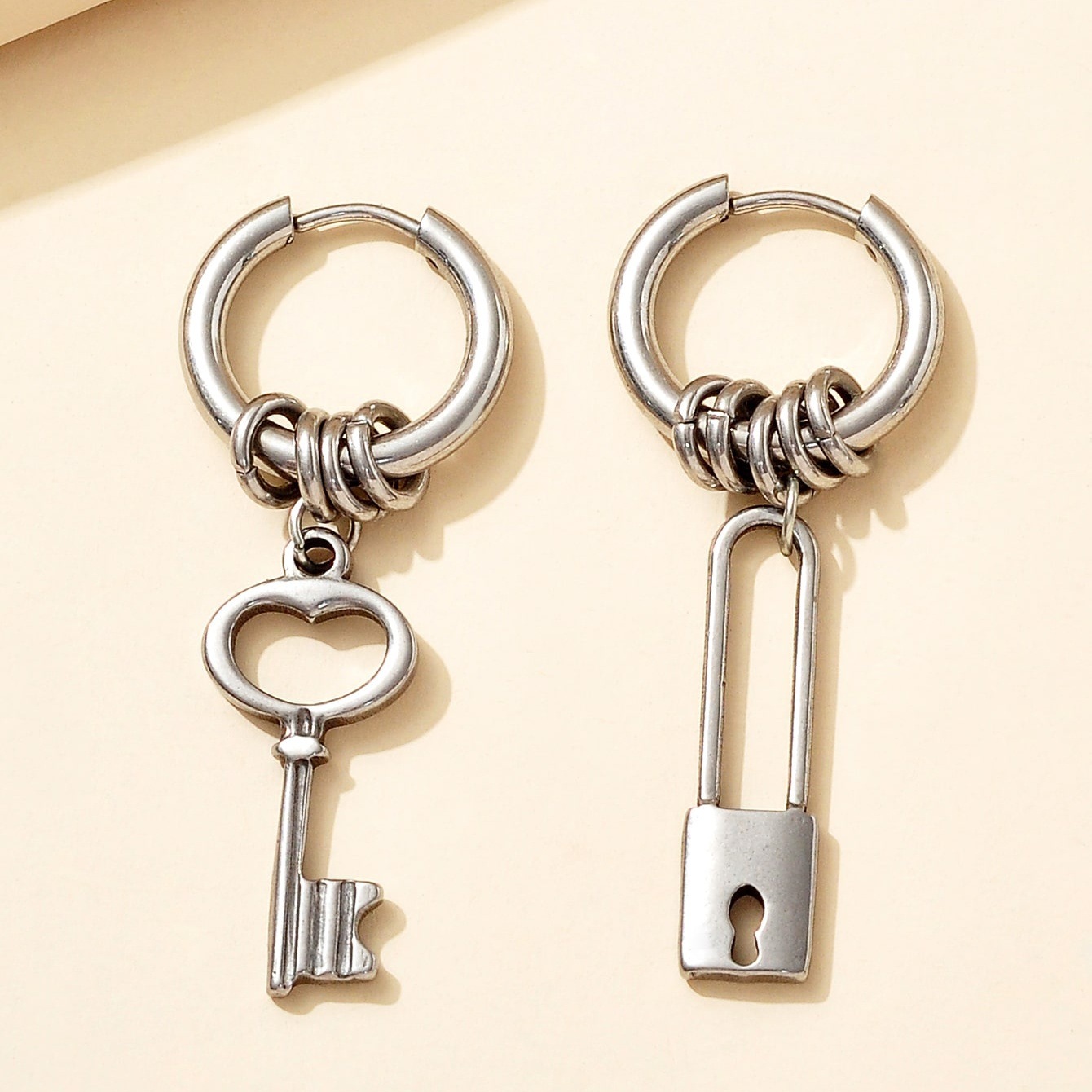 国境を越えた欧米ファッションチタン鋼ステンレス鍵ペンダントイヤリング女性ファッションピアス耳輪シンプル耳飾り