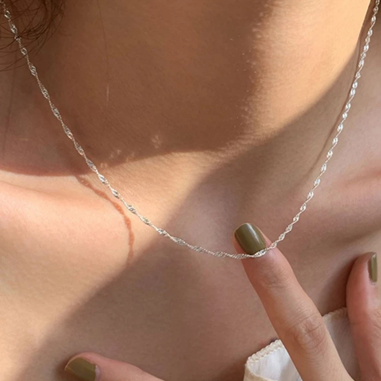 クロスボーダーの新しいチェーンネックレス、ファッショナブルで多用途、輝くネックレス、フェミニンで多用途、シルバーの鎖骨チェーンジュエリー