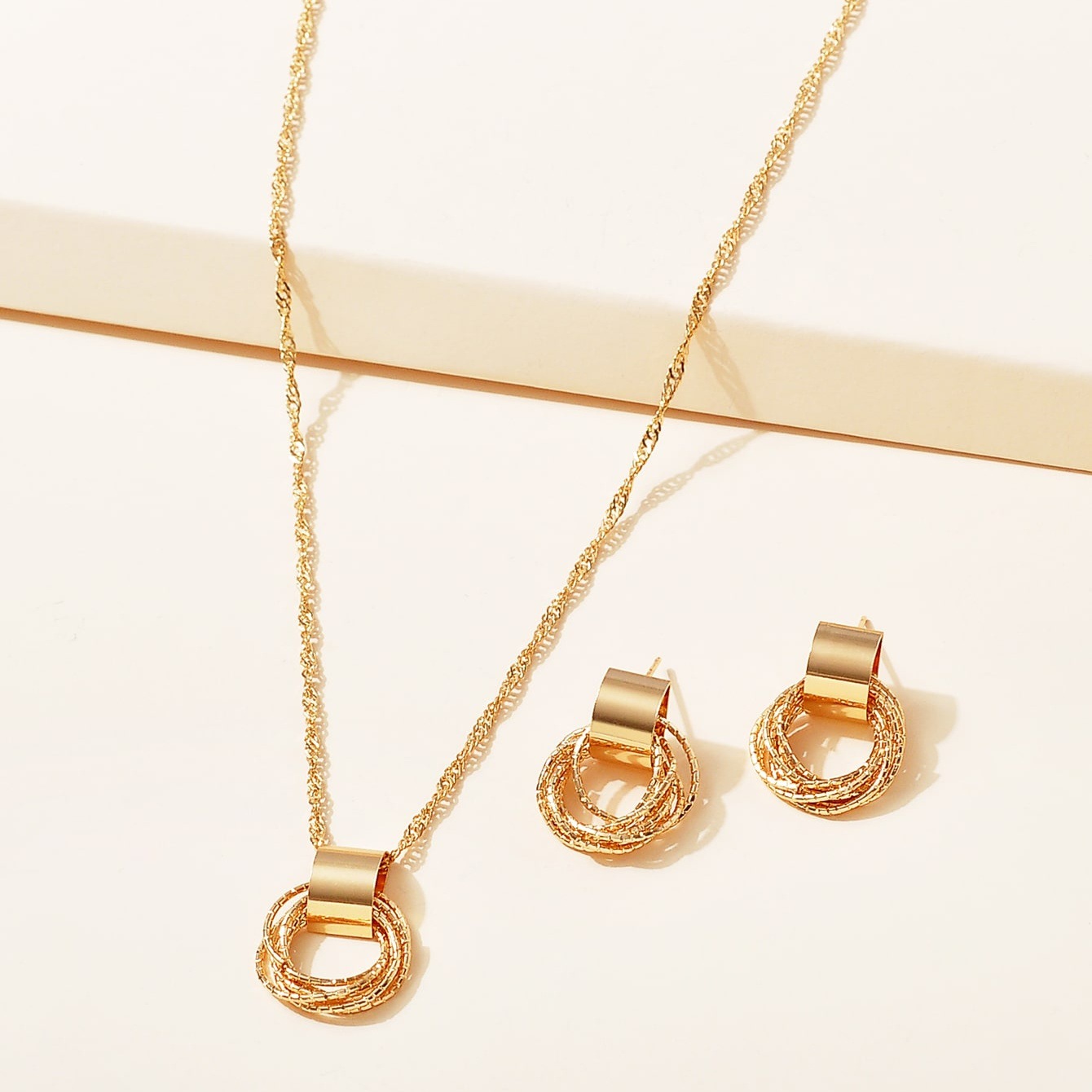 ヨーロッパとアメリカのクロスボーダージュエリーファッショナブルでシンプルな気質メタル幾何学ネックレスイヤリングセット鎖骨チェーンネックレスイヤリング女性用