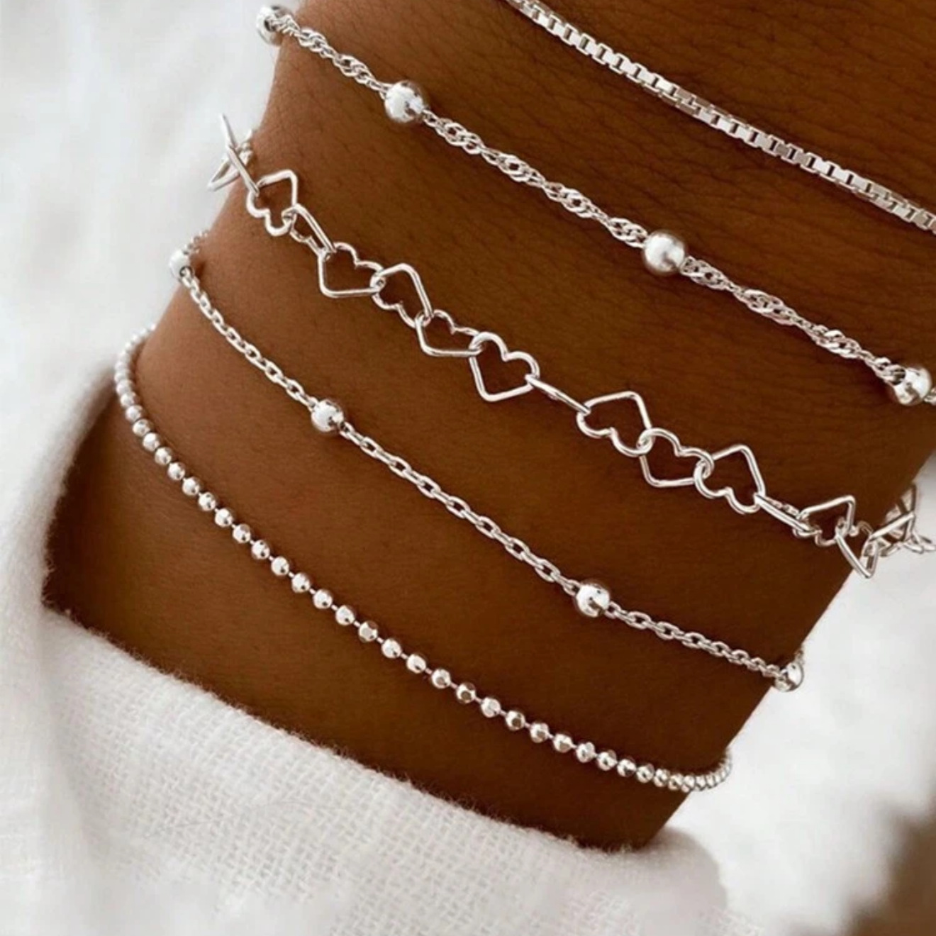 欧米の国境を越えたボヘミアンの極めてシンプルな手飾り金属チェーンのブレスレットセット女性の多層チェーンのシンプルなブレスレット