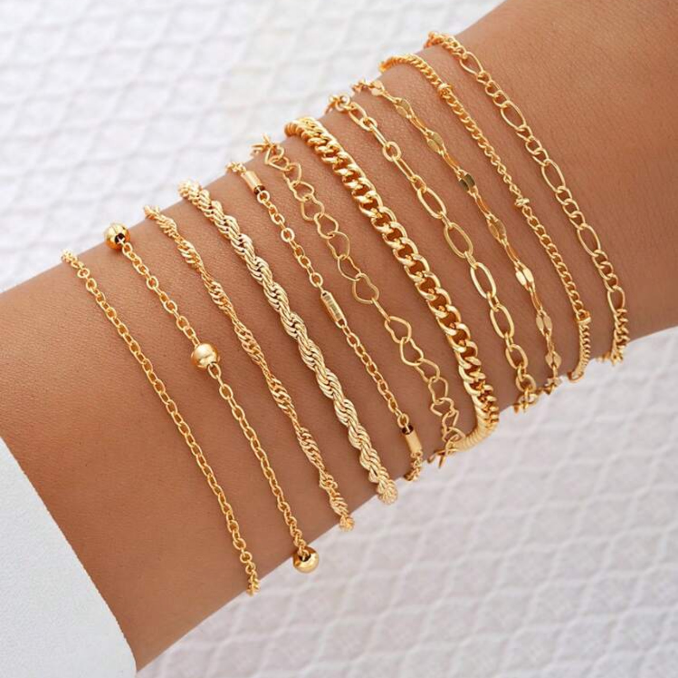 クロスボーダーヨーロッパとアメリカの中空ラブツイストチェーンブレスレット絶妙なファッション気質パーソナライズされたハンドジュエリー11ピースブレスレットセット