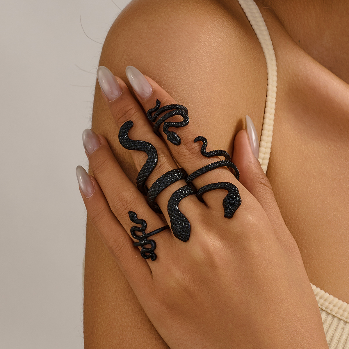 ヨーロッパとアメリカのクロスボーダージュエリー人気のメンズとレディースのスネークリングパンクスネークシェイプレトロリングセットジュエリーハンドアクセサリー