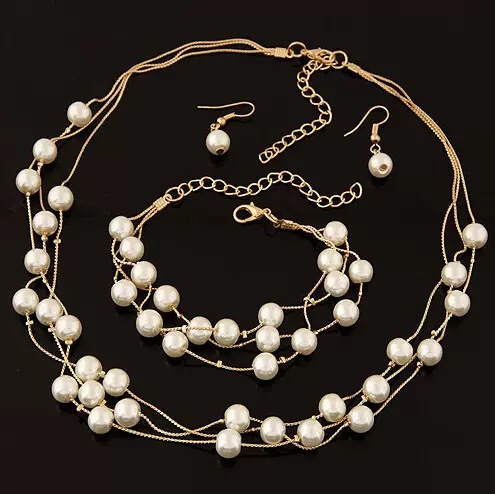 欧米のクロスボーダーのアクセサリーのファッションは誇張して真珠の多層のネックレスのイヤリングのブレスレットのアクセサリーのスーツの花嫁のアクセサリーの女性をまねます。