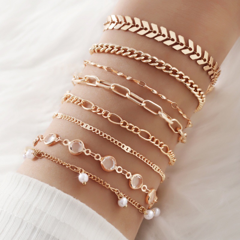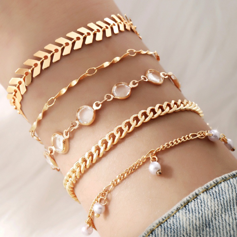 ヨーロッパとアメリカのクロスボーダージュエリーボヘミアンミニマリストハンドジュエリーメタルフィガロチェーンレディースセット多層チェーンブレスレット