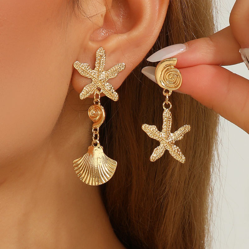 ヨーロッパとアメリカのクロスボーダージュエリーオーシャンスタイルパーティーピアスホリデービーチヒトデメタルイヤリングレディースファッションアクセサリージュエリー