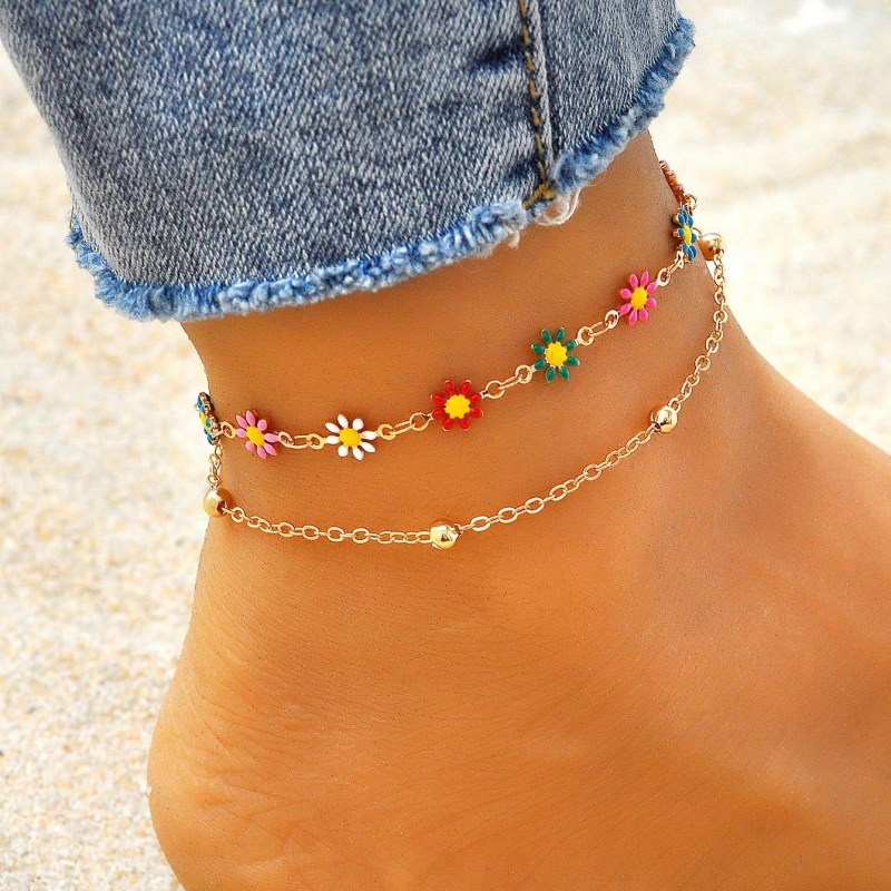 ヨーロッパとアメリカの国境を越えた売れ筋ジュエリー夏のドーパミンカラーデイジーアンクレット女性ニッチビーチ休暇フットアクセサリー