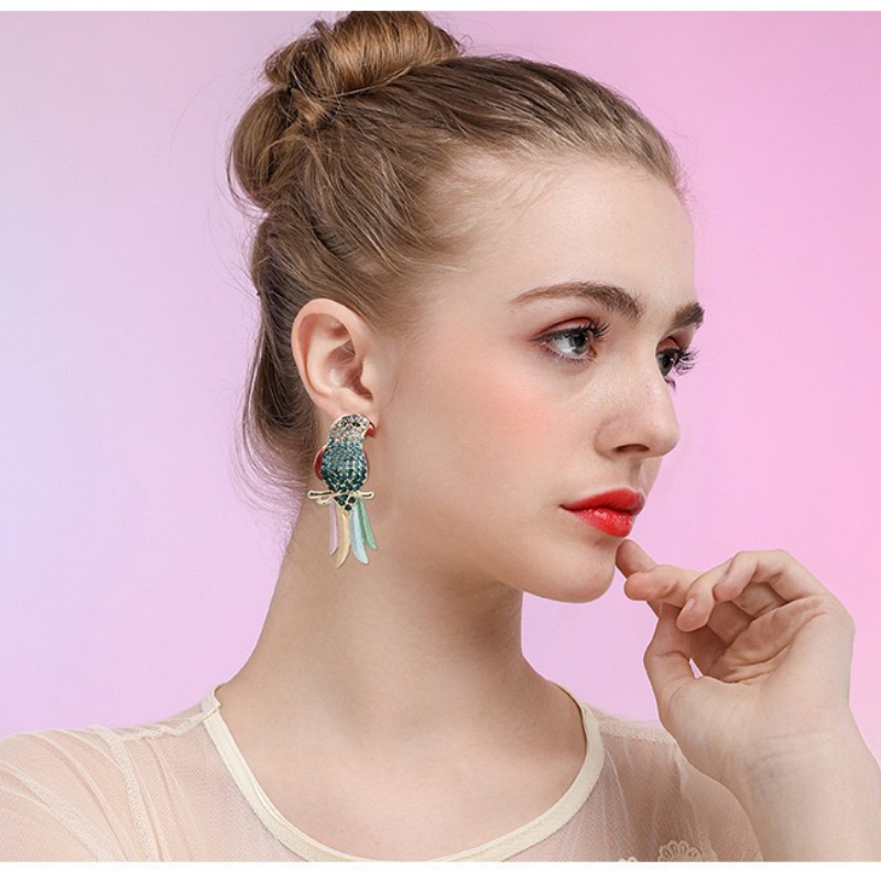 ヨーロッパとアメリカのクロスボーダーの新しい誇張されたジュエリー、ダイヤモンドがちりばめられたカラフルなオウムのイヤリング、パーソナライズされたファッションイヤリング、イヤリング、アクセサリー、ジュエリー
