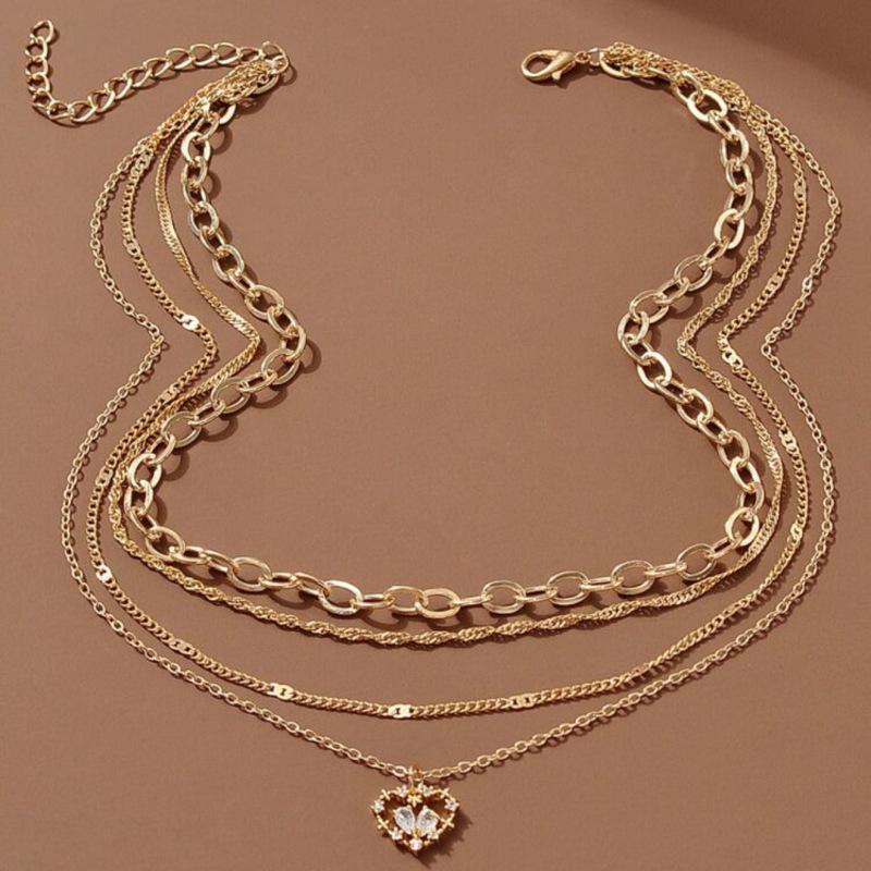 ヨーロッパとアメリカの国境を越えた新しいジュエリー愛ペンダントネックレス多用途多層鎖骨チェーン女性のネックレスファッションアクセサリージュエリー