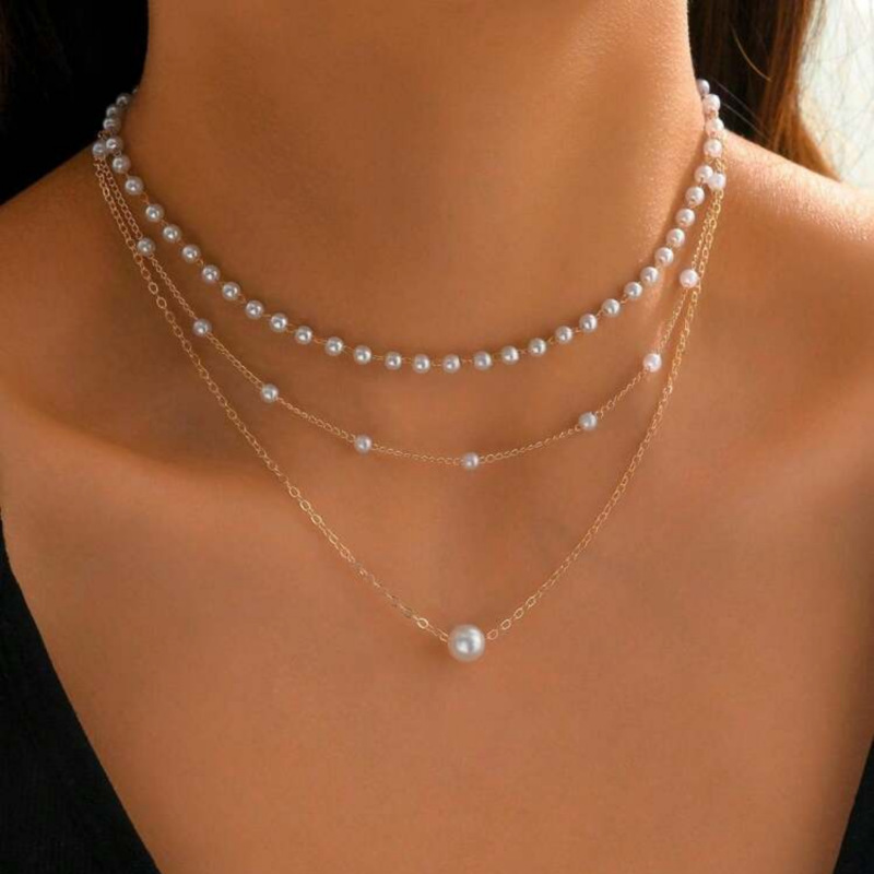 欧米のクロスボーダーの新型アクセサリーファッション真珠チェーンの多層ネックレスの女性は重ねて百合のアクセサリーのアクセサリーをつけます。