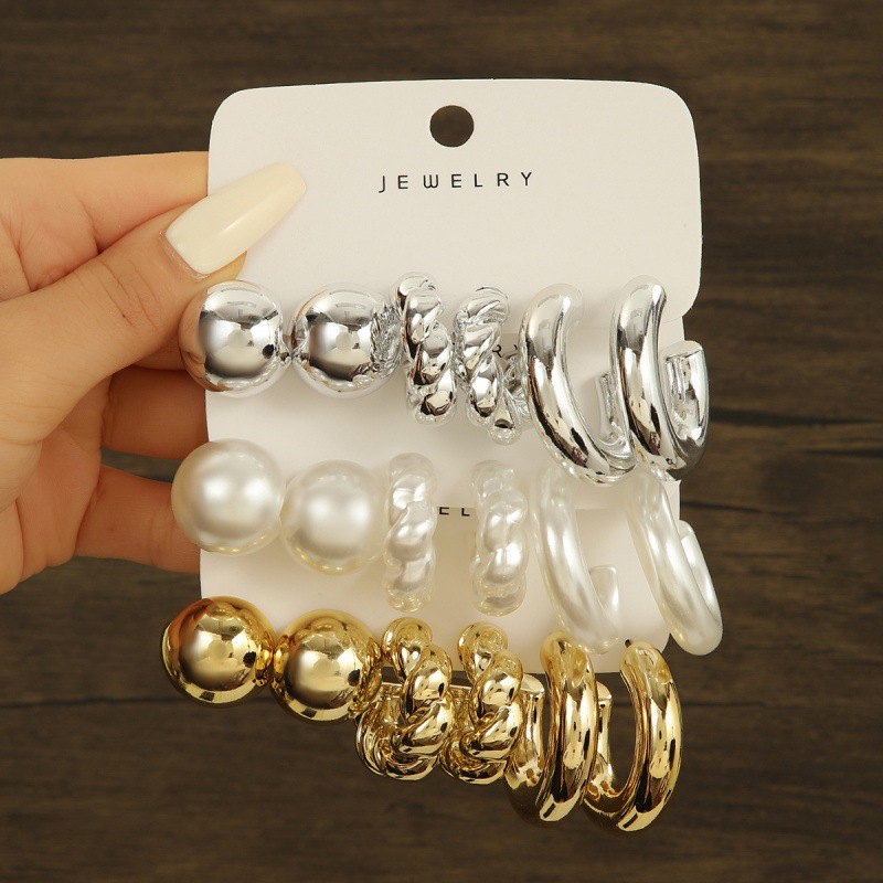 ヨーロッパとアメリカの国境を越えた新しいジュエリーイヤリングセット、ファッショナブルでシンプルなメタルC型イヤリング、イヤースタッド、イヤークリップ、イヤリングアクセサリー